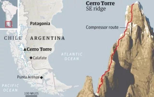 1970年,马斯瑞为证明他能够登顶托雷,与其团队带着200升汽油和筑路用的大功率空气掘进机,乘直升飞机空降帕塔哥尼亚。 马斯特瑞不使用任何攀登技术,在轰鸣的马达声中以几秒钟一颗钢钉的速度,在世界文明鞭长莫及的角落用现代工业手段推进到顶峰下。在强暴完世界攀登者心中的梦想之后,马斯瑞将掘进机悬挂在线路的最顶端,线路因此得名——“空气压缩机”(Compressor route)。 ——《托雷峰上的公平游戏》,撰文/Zenith Zhang